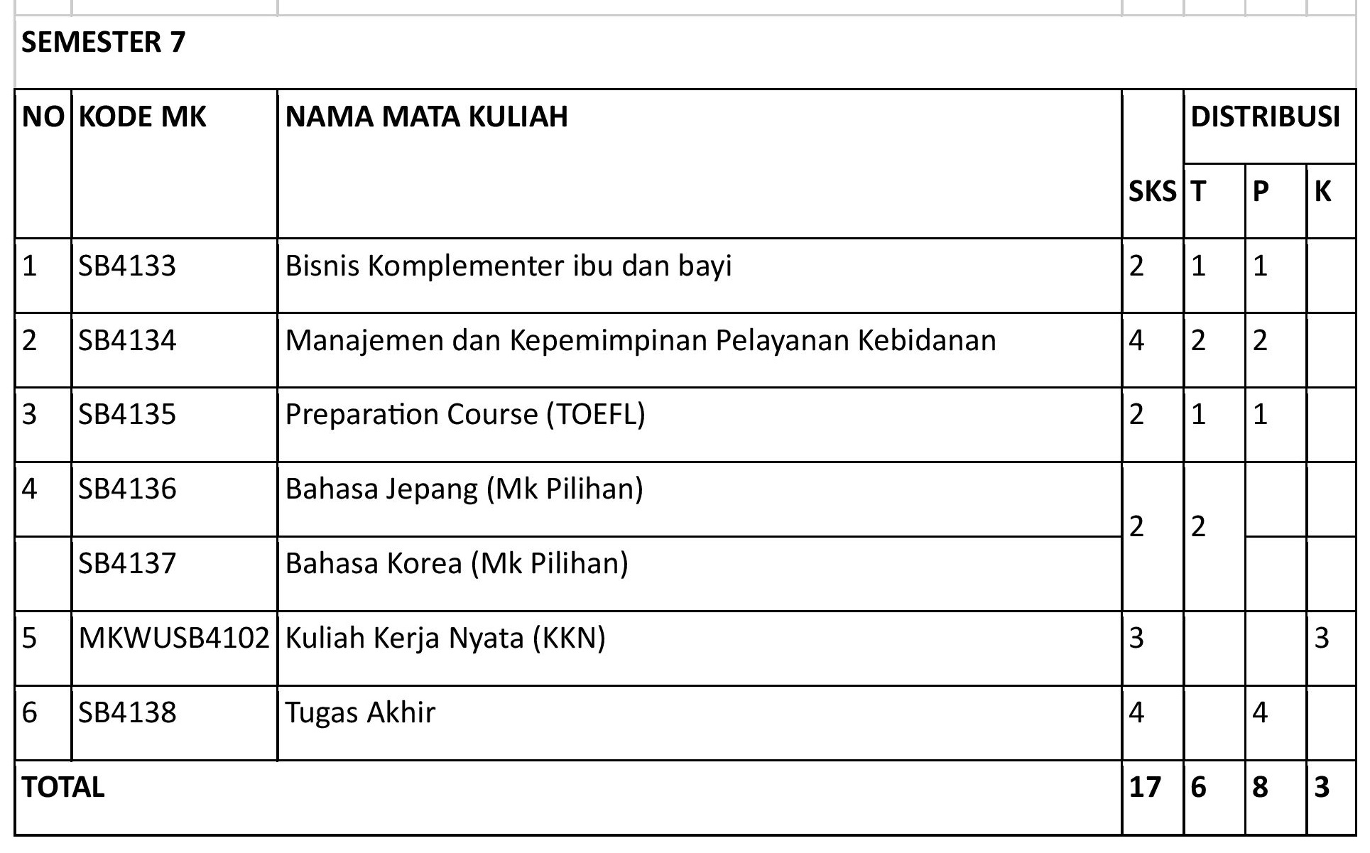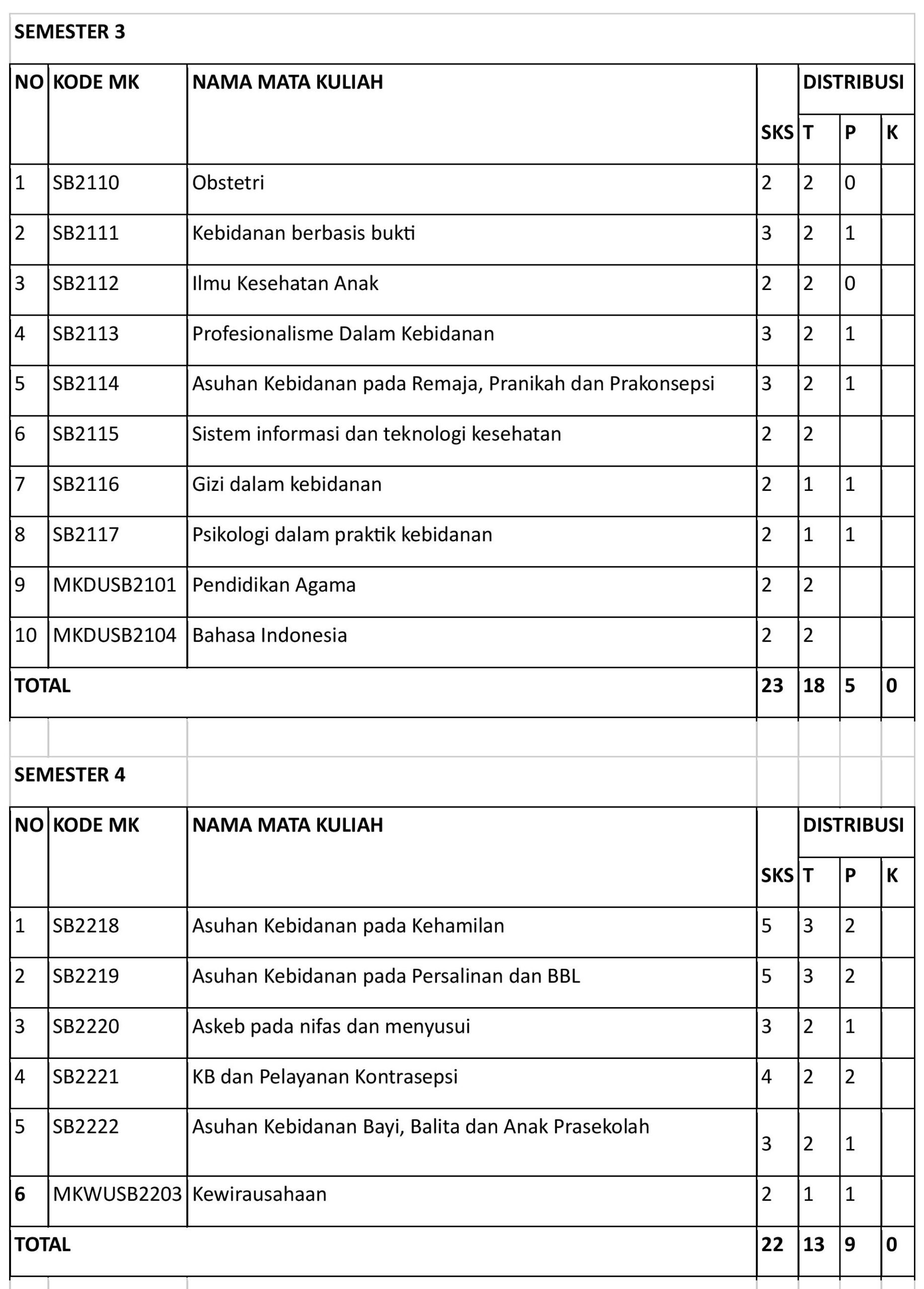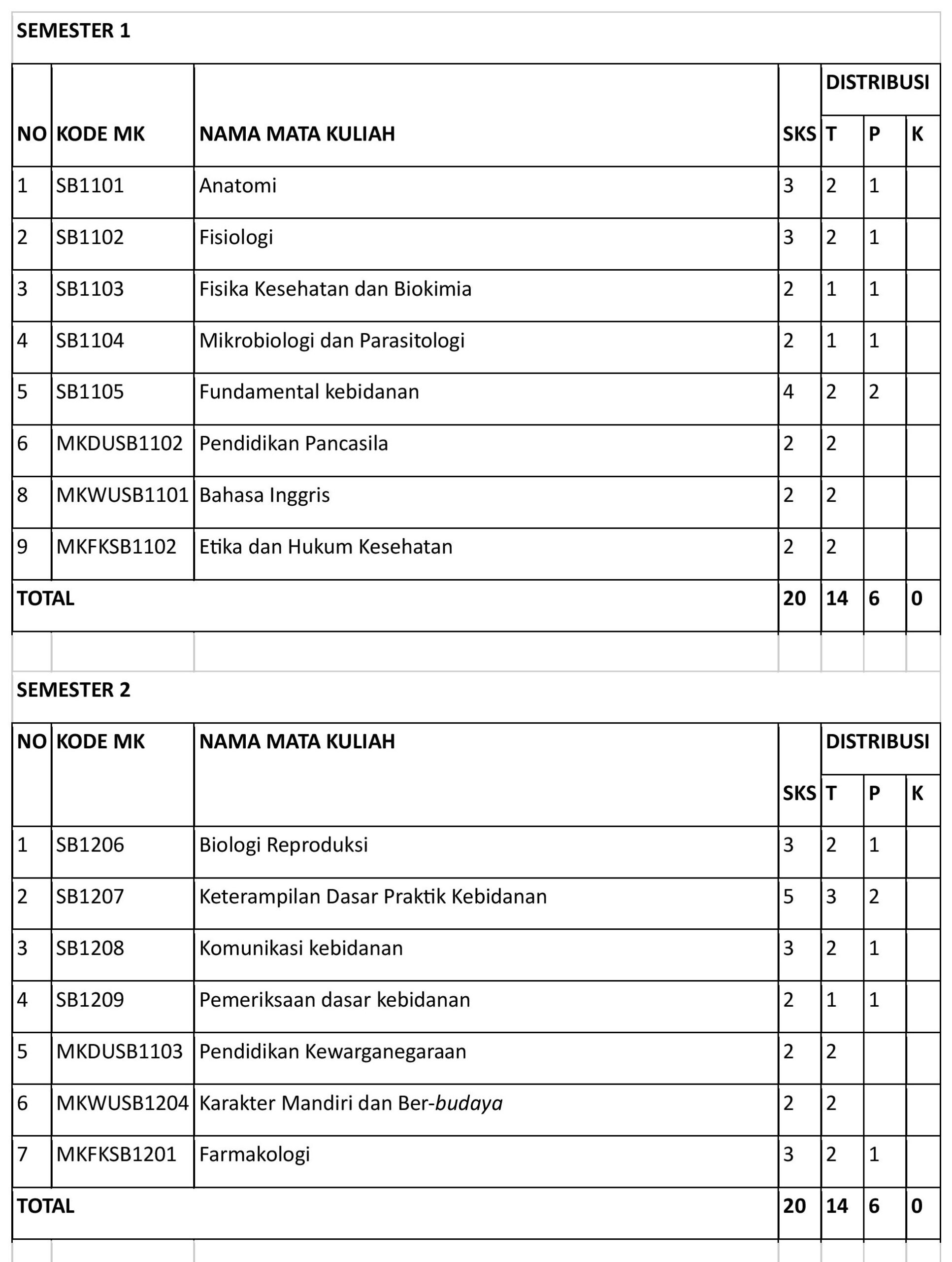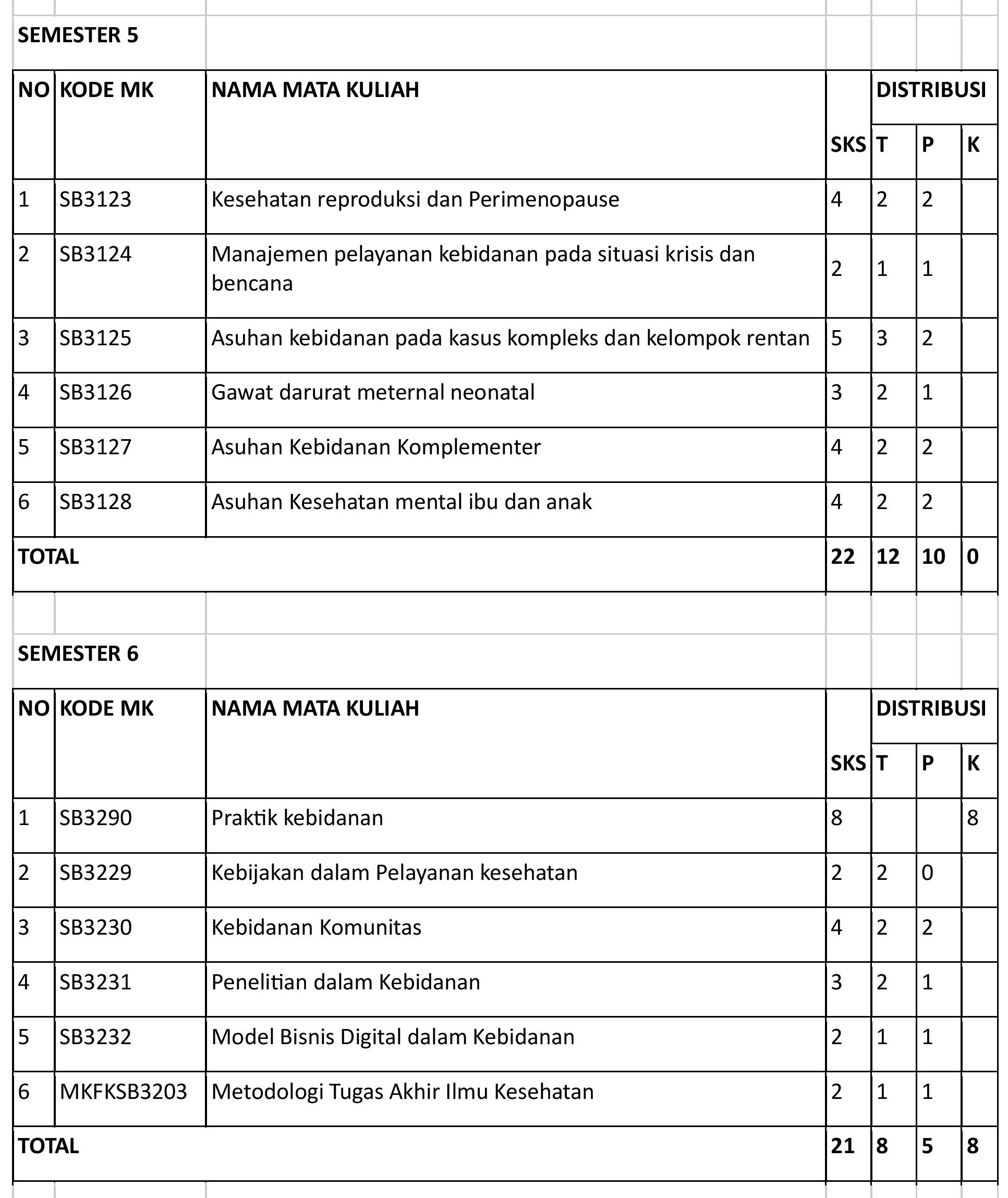 STRUKTUR MATA KULIAH PROGRAM STUDI S1 KEBIDANAN